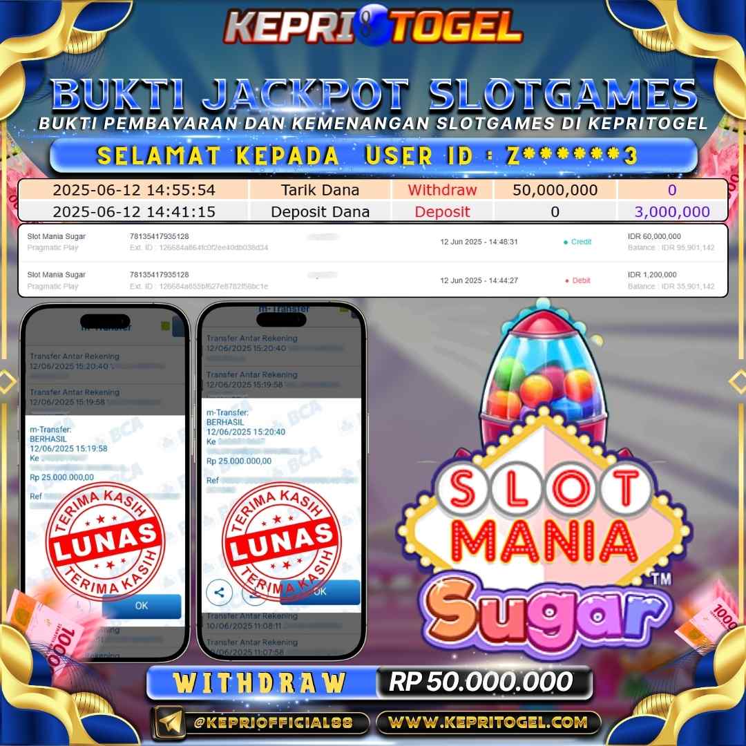 Kepritogel Jackpot Slot Mania Sugar Rp50,000,000