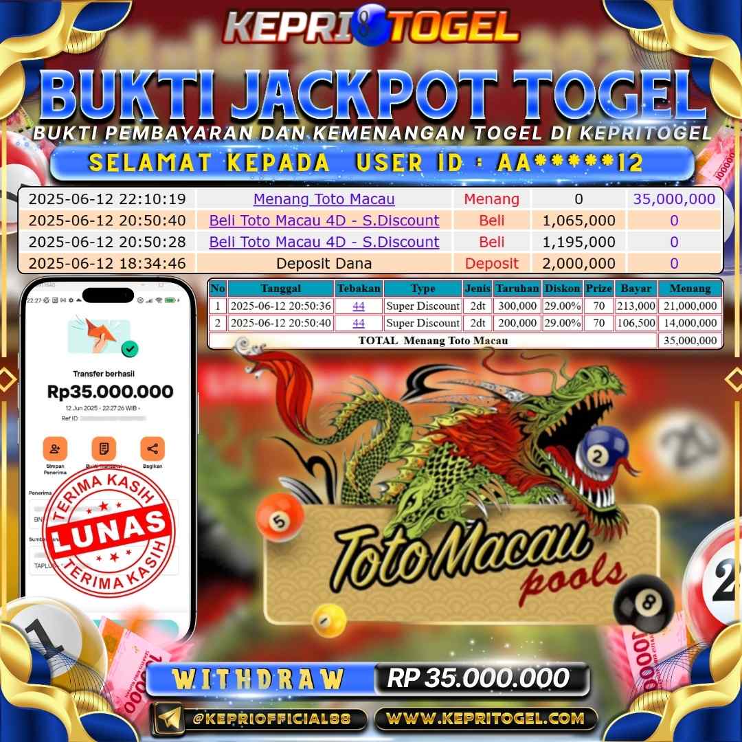 Kepritogel Jackpot Togel TOTO MACAU 4D Rp35.000,000
