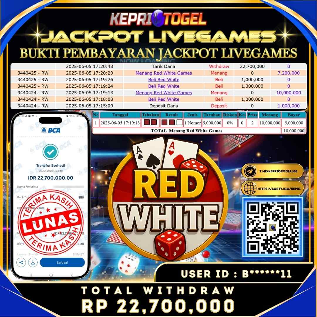 Kepritogel Jackpot Live Game Red White Rp22,700,000