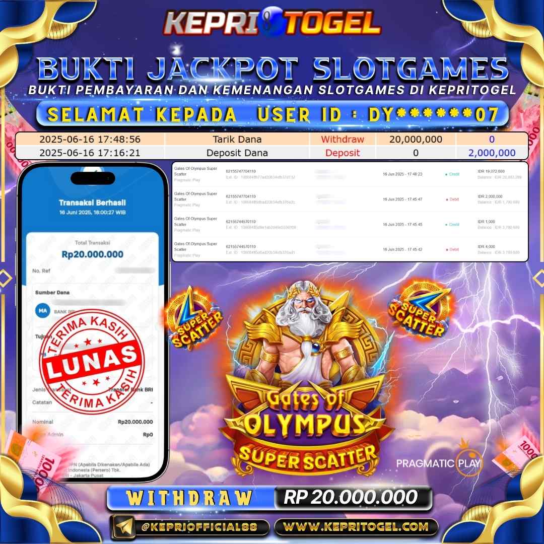 Kepritogel Jackpot Slot Gates Of Olympus Rp20,000,000