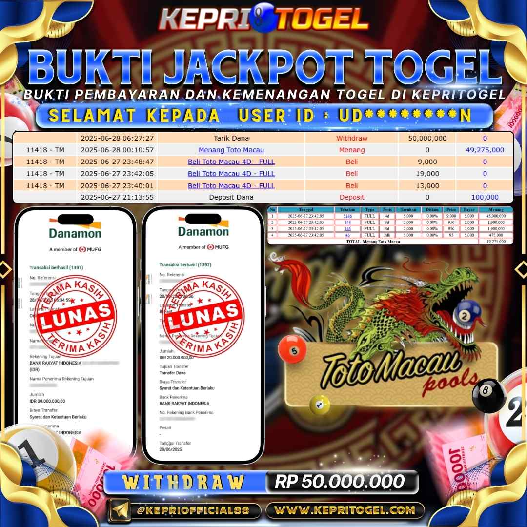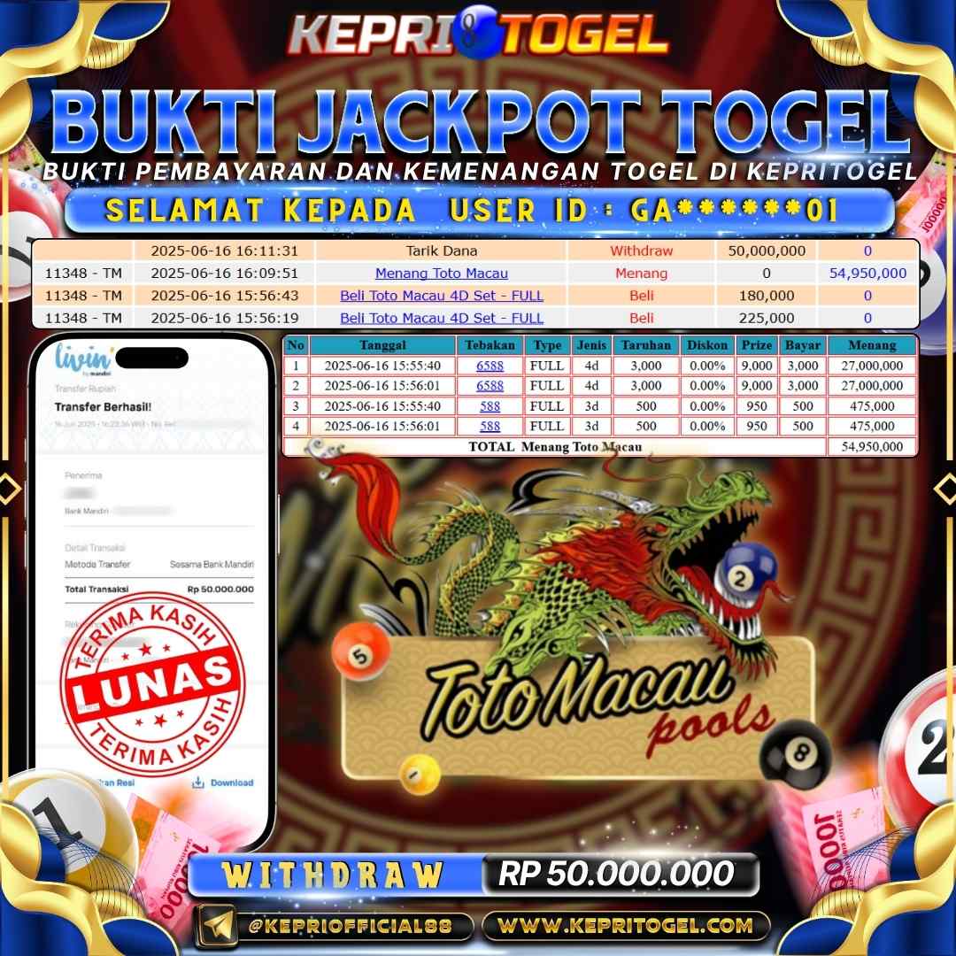 Kepritogel Jackpot Togel TOTO MACAU 4D Rp50,000,000