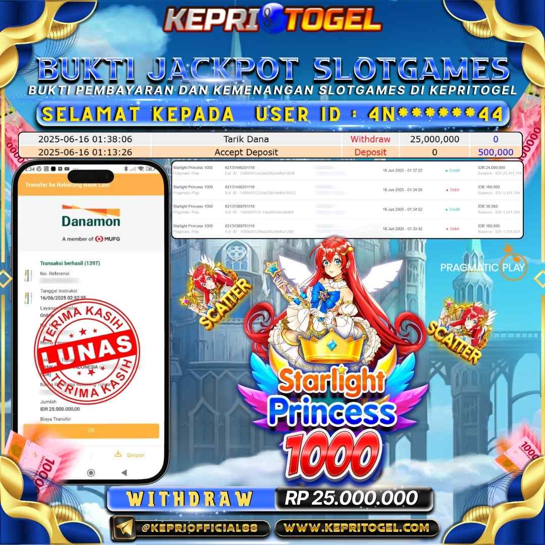 Kepritogel Jackpot Slot Starlight Princess 1000 Rp25,000,000