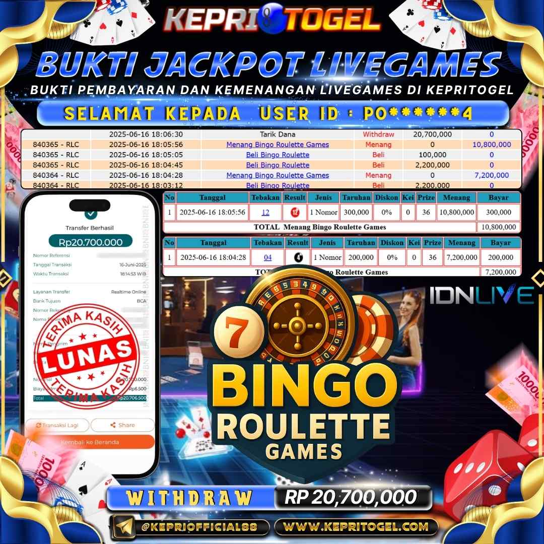 Kepritogel Jackpot Live Game Bingo Roulette Rp20,700,000