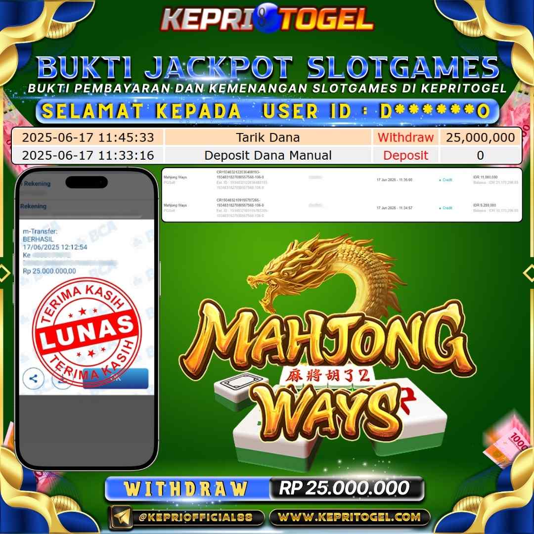 Kepritogel Jackpot Slot Mahjong Ways Rp25,000,000