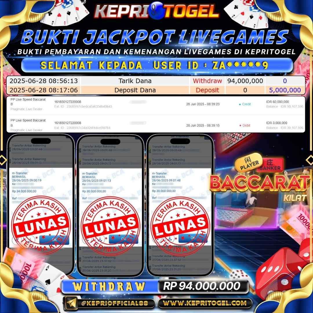 Selamat kepada UserId P*****4 telah berhasil mendapatkan kemenangan jackpot pada permainan Slot Zombie Train Kepritogel sebesar Rp100.000,000,- . Kepritogel situs terpercaya sejak dulu hingga saat ini , Untuk kemenangan berapapun pasti akan kami bayarkan . Jangan ragu bermain di Kepri Togel . Kami pihak Kepritogel Menyampaikan terima kasih kepada seluruh member Kepri Togel yang telah Percaya dan setia Bersama kami bermain di Kepritogel hingga saat ini.