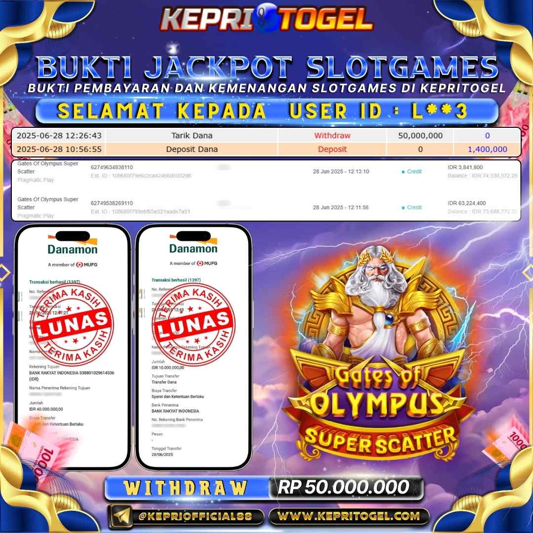 Selamat kepada UserId A*******RI telah berhasil mendapatkan kemenangan jackpot pada permainan Slot Olympus Wins PP Kepritogel sebesar Rp51,000,000,- . Kepritogel situs terpercaya sejak dulu hingga saat ini , Untuk kemenangan berapapun pasti akan kami bayarkan . Jangan ragu bermain di Kepri Togel . Kami pihak Kepritogel Menyampaikan terima kasih kepada seluruh member Kepri Togel yang telah Percaya dan setia Bersama kami bermain di Kepritogel hingga saat ini.