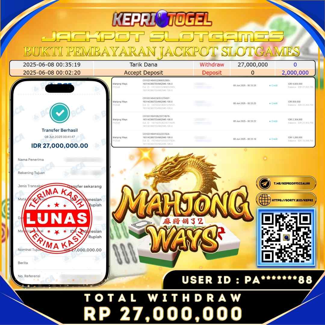 Kepritogel Jackpot Slot Mahjong Ways Rp27,000,000