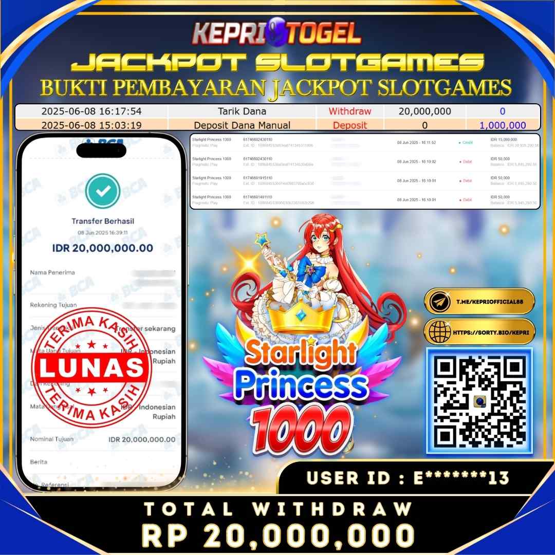 Kepritogel Jackpot Slot Starlight Princess 1000 Rp20,000,000