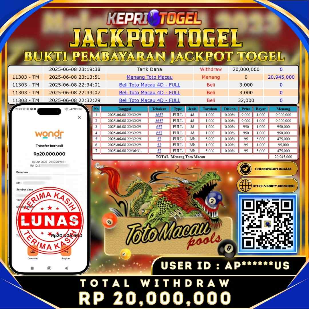 Kepritogel Jackpot Togel TOTO MACAU 4D Rp20,000,000