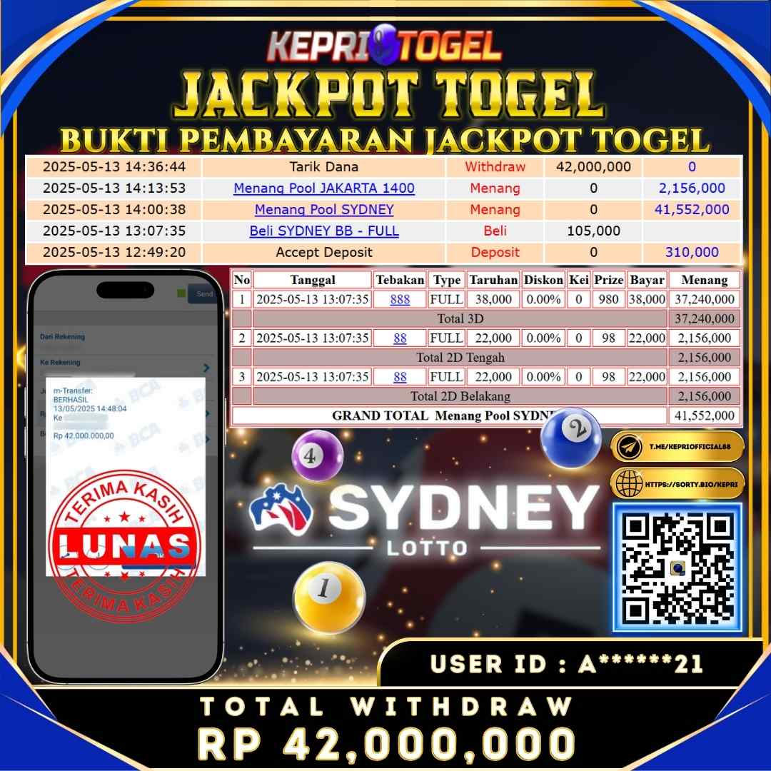 Kepritogel Jackpot Togel SYDNEY LOTTO Rp42,000,000