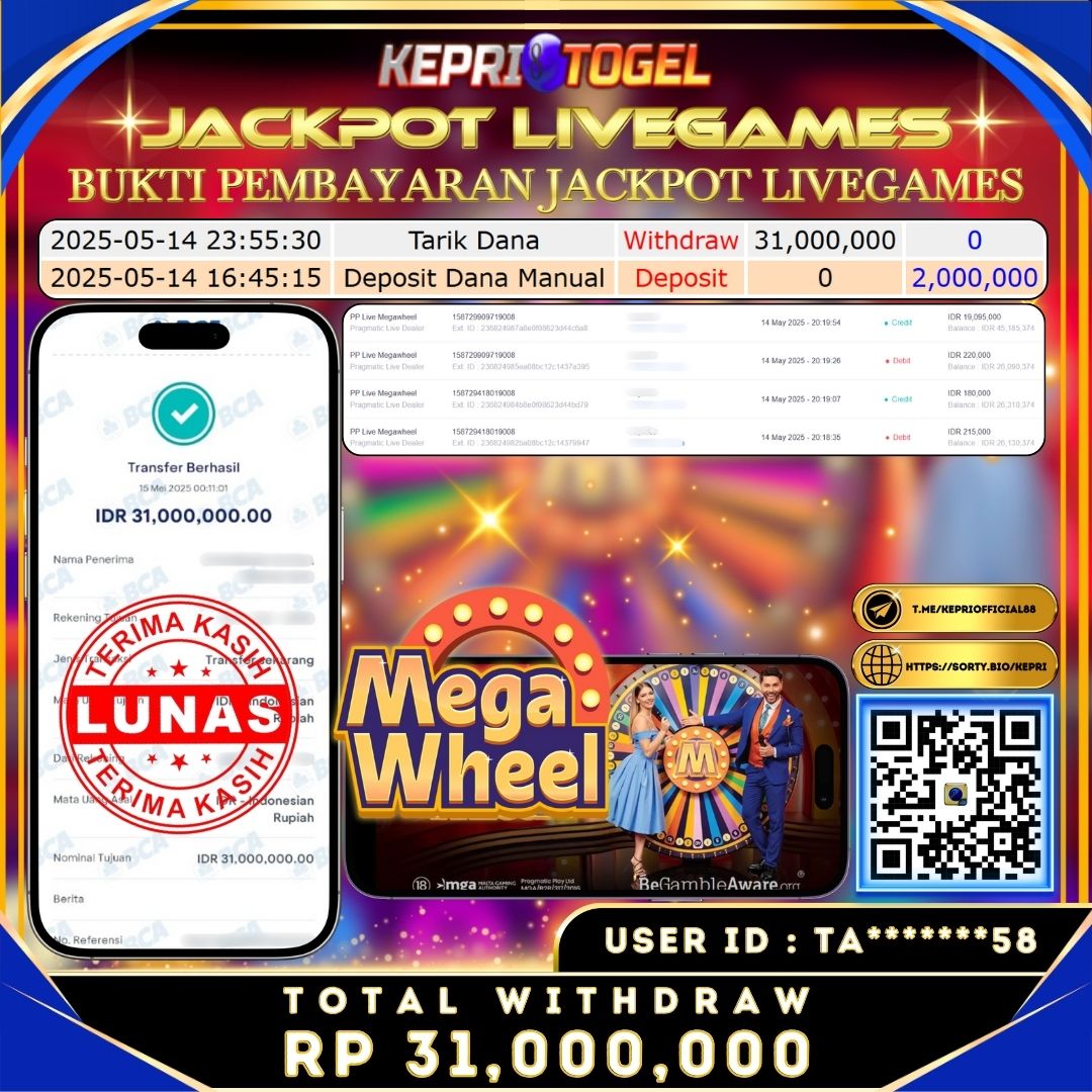 Kepritogel Jackpot Live Game Megawheel Rp 31,000,000