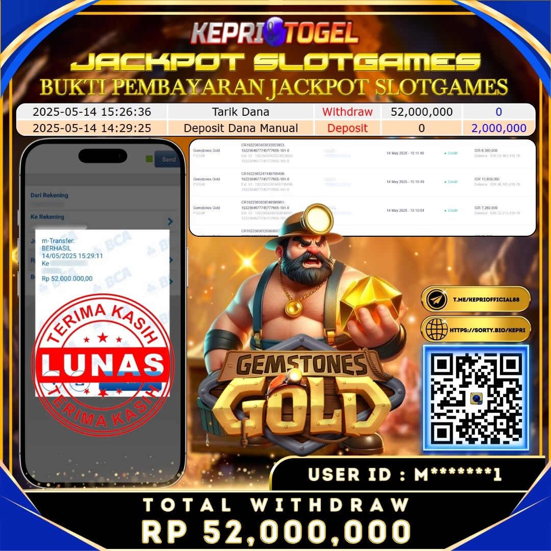 Kepritogel Jackpot Slot Gemstones Gold Rp52,000,000