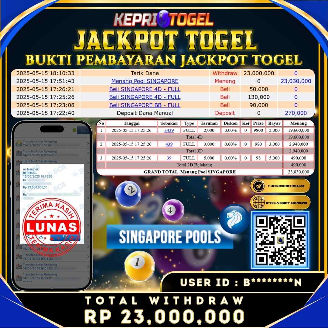 Kepritogel Jackpot Togel SINGAPORE POOLS Rp23,000,000