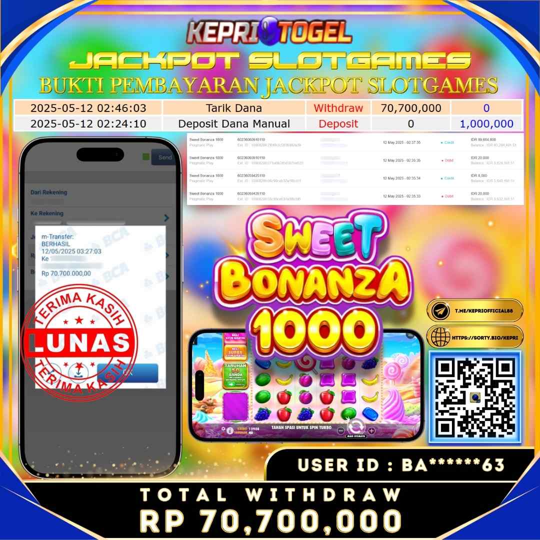 Kepritogel Jackpot Slot Sweet Bonanza 1000 Rp70,700,000