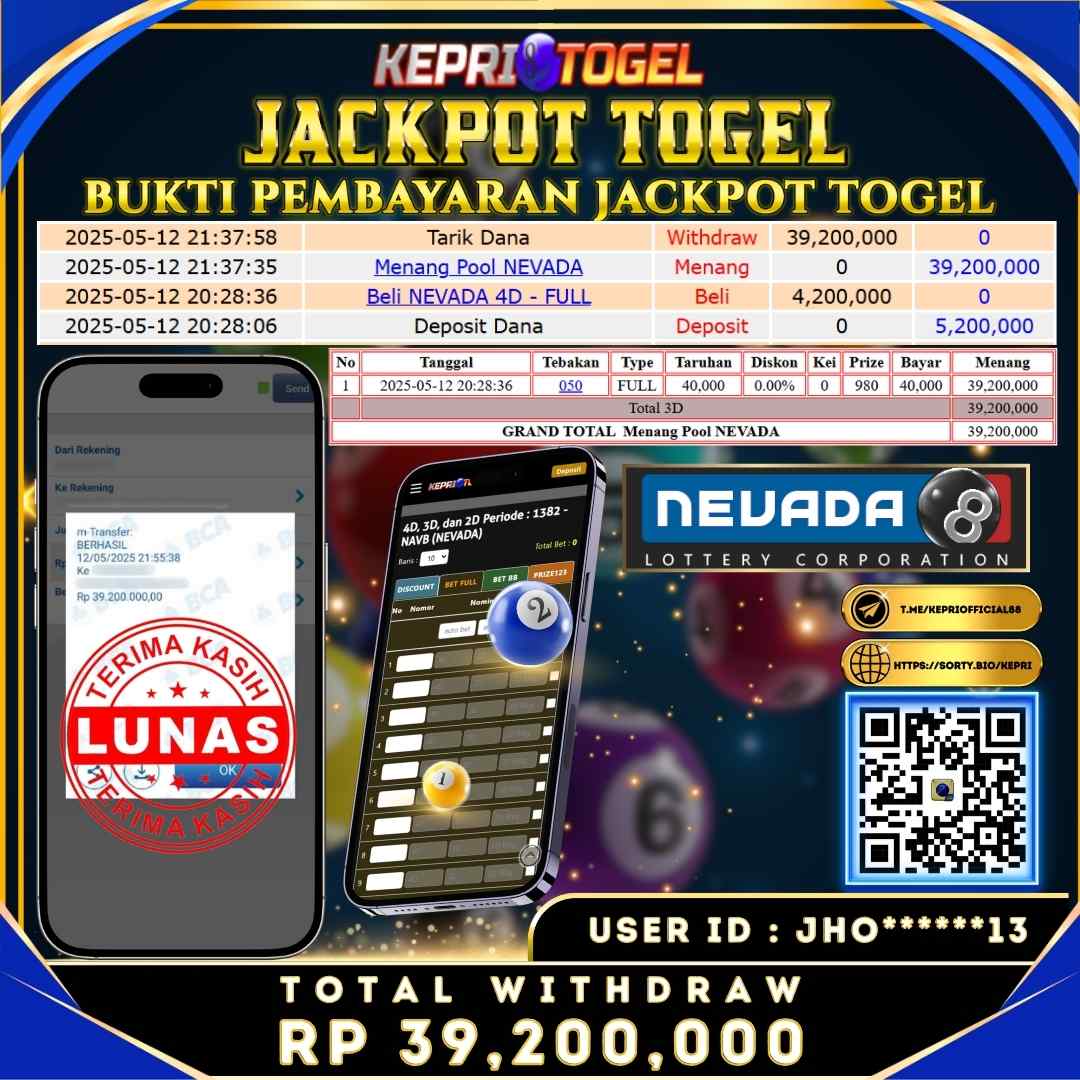 Kepritogel Jackpot Togel NEVADA Rp39,200,000