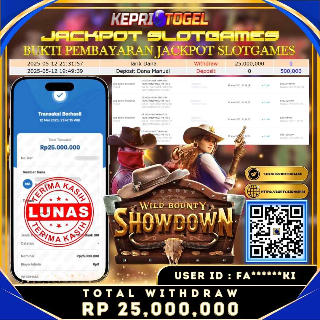 Selamat kepada UserId FA******KI telah berhasil mendapatkan kemenangan jackpot pada permainan Slot Wild Bounty Showdown Kepritogel sebesar Rp25,000,000,- . Kepritogel situs terpercaya sejak dulu hingga saat ini , Untuk kemenangan berapapun pasti akan kami bayarkan . Jangan ragu bermain di Kepri Togel . Kami pihak Kepritogel Menyampaikan terima kasih kepada seluruh member Kepri Togel yang telah Percaya dan setia Bersama kami bermain di Kepritogel hingga saat ini.