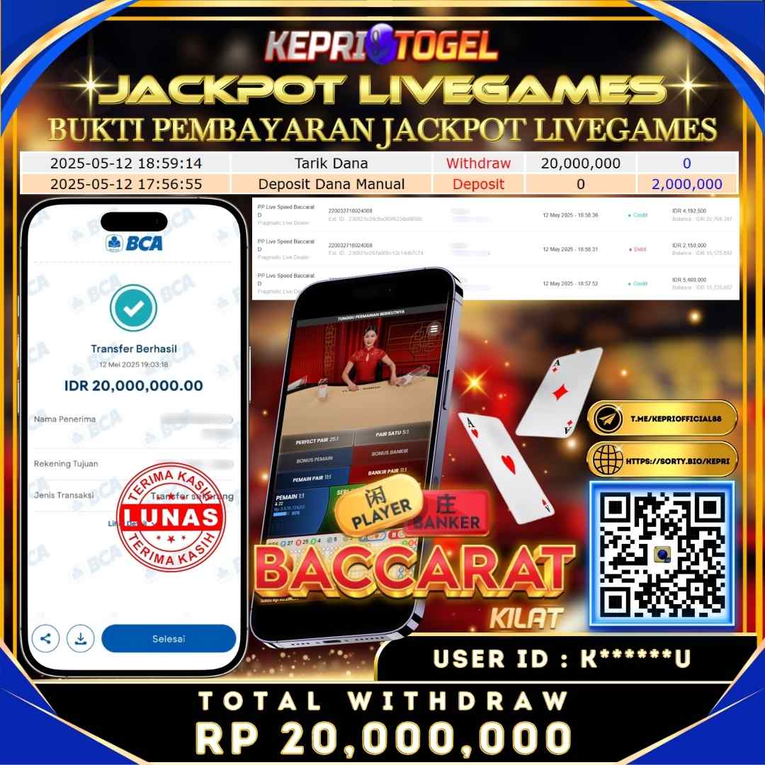 Kepritogel Jackpot Live Game SPEED BACCARAT Rp20,000,000