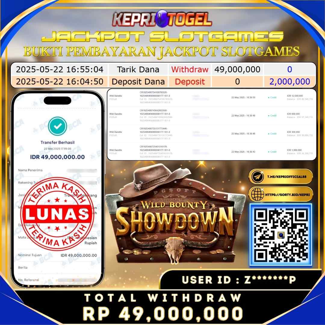 Selamat kepada UserId Z*******P telah berhasil mendapatkan kemenangan jackpot pada permainan Slot Wild Bounty Showdown Kepritogel sebesar Rp49,000,000,- . Kepritogel situs terpercaya sejak dulu hingga saat ini , Untuk kemenangan berapapun pasti akan kami bayarkan . Jangan ragu bermain di Kepri Togel . Kami pihak Kepritogel Menyampaikan terima kasih kepada seluruh member Kepri Togel yang telah Percaya dan setia Bersama kami bermain di Kepritogel hingga saat ini.