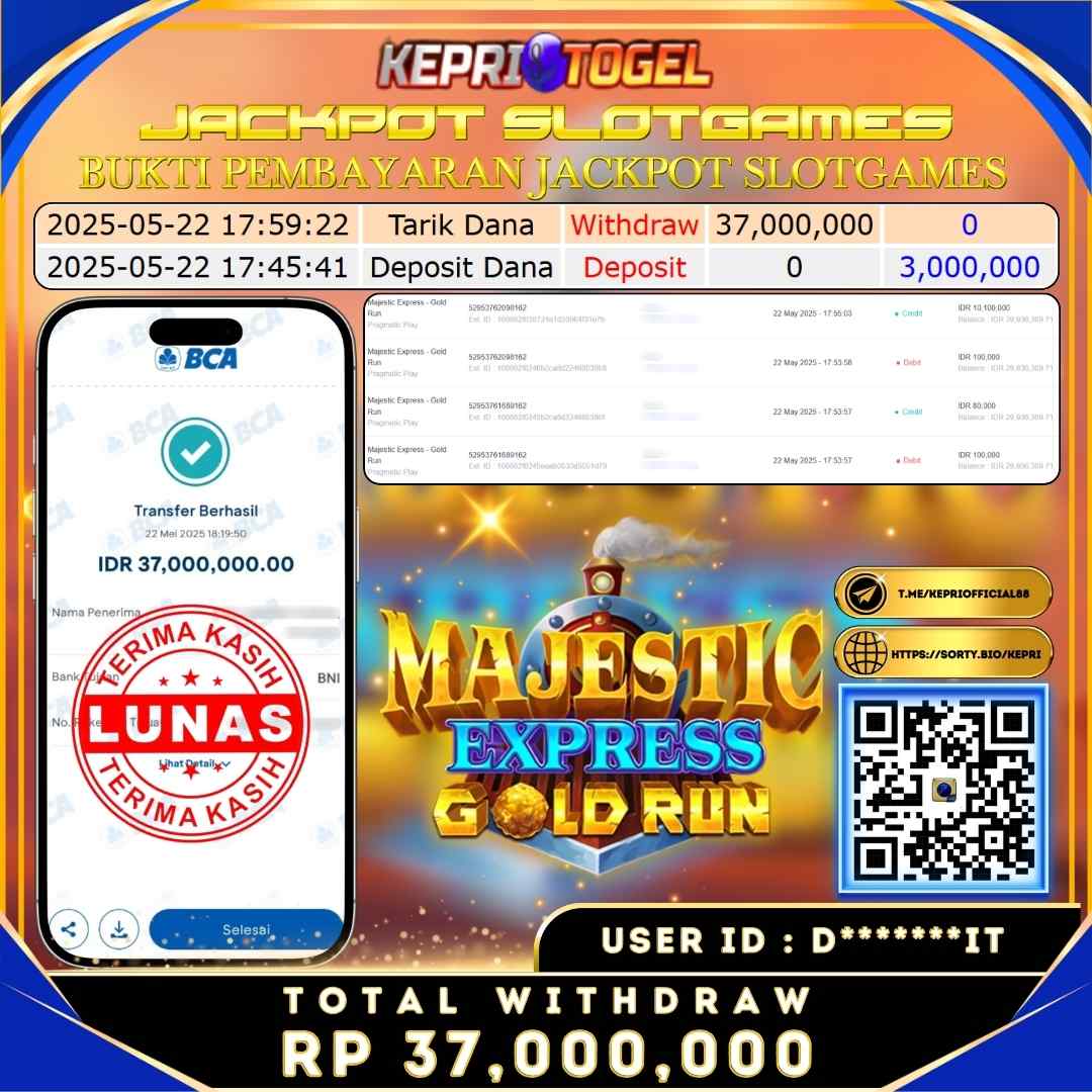 Kepritogel Jackpot Slot Majestic Express - Gold Run Rp37,000,000