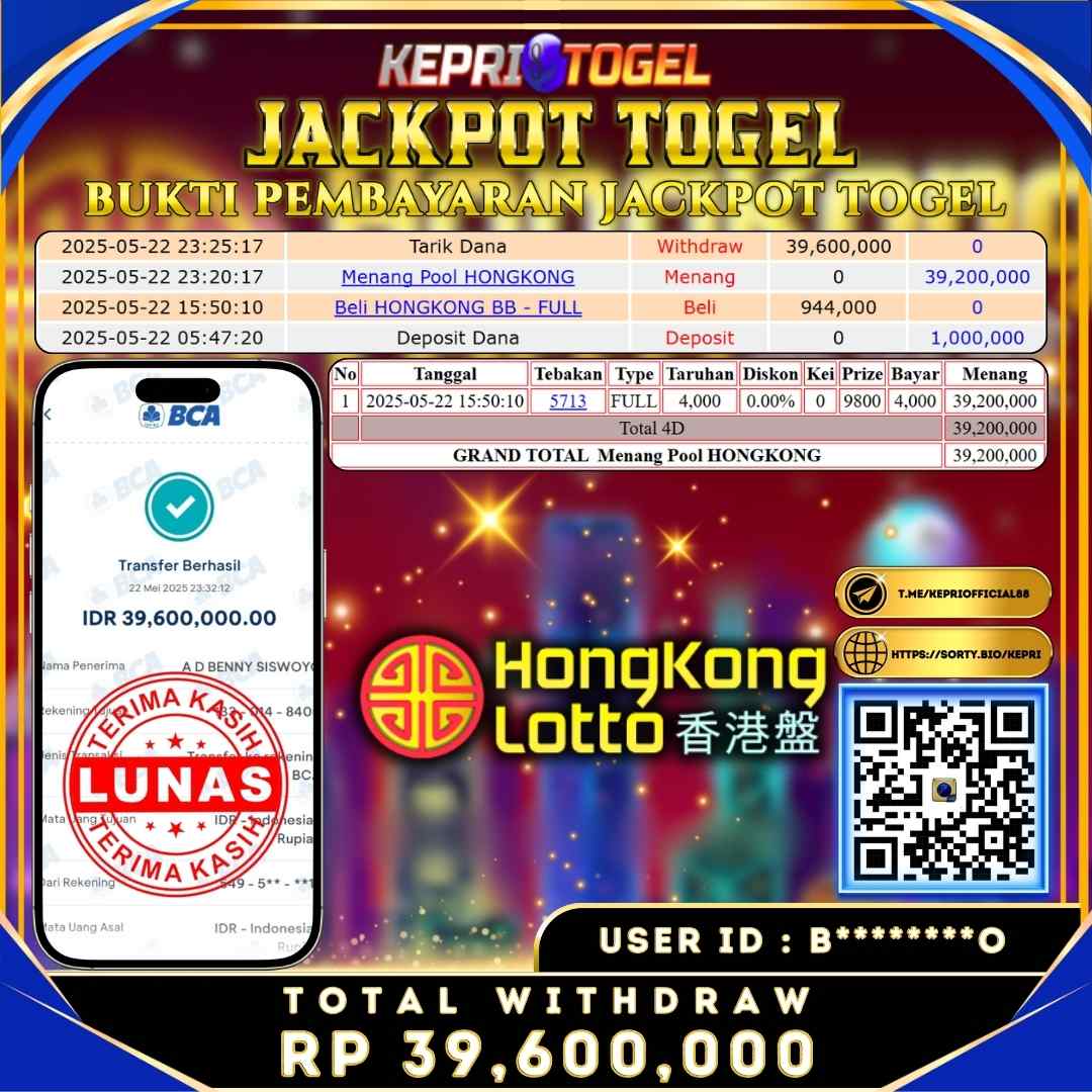 Kepritogel Jackpot Togel HONGKONG LOTTO Rp39,600,000