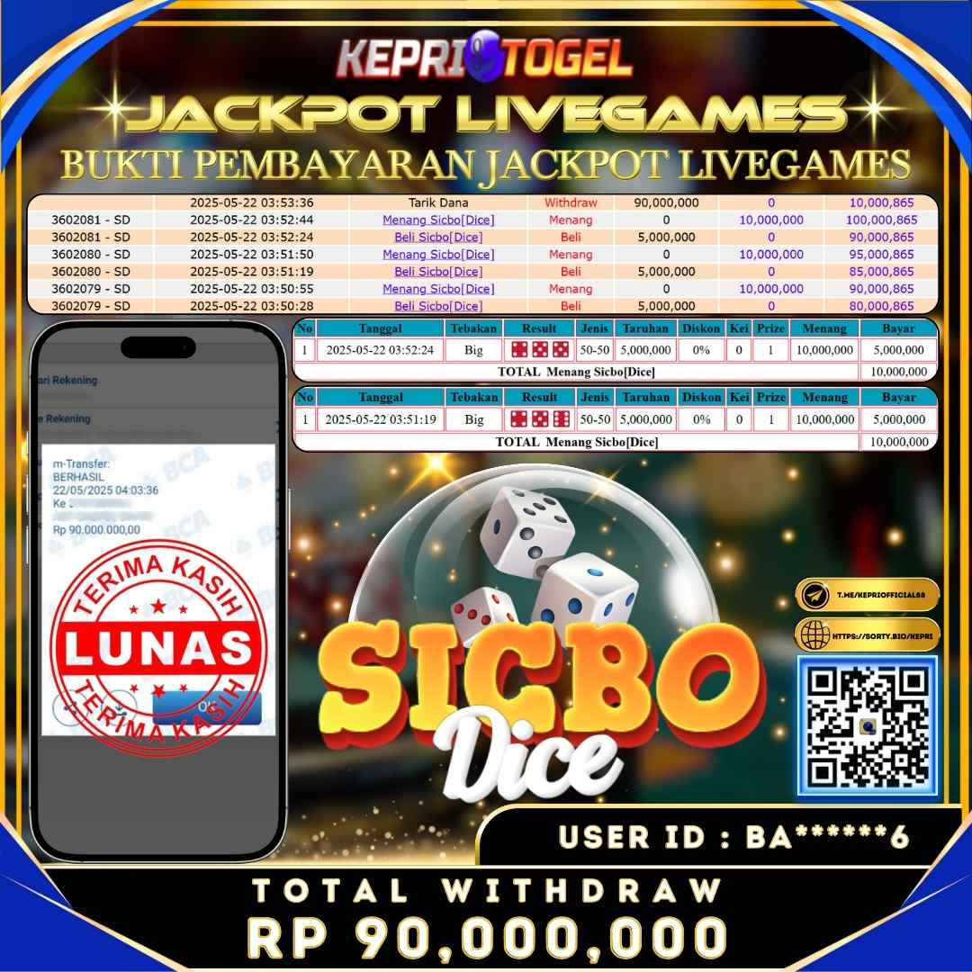 Kepritogel Jackpot Live Game SICBO ( DICE ) Rp90,000,000
