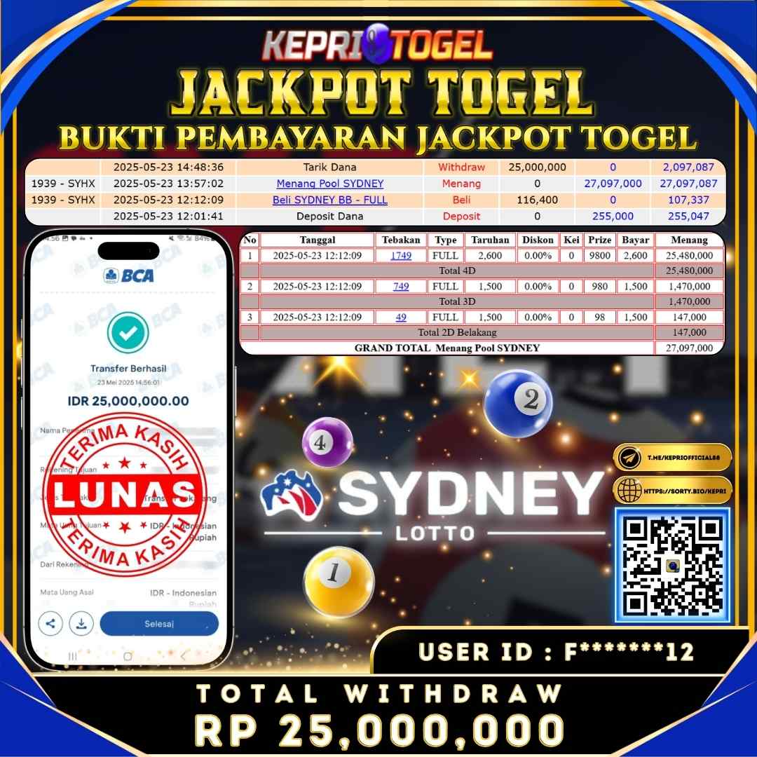 Kepritogel Jackpot Togel SYDNEY LOTTO Rp25,000,000