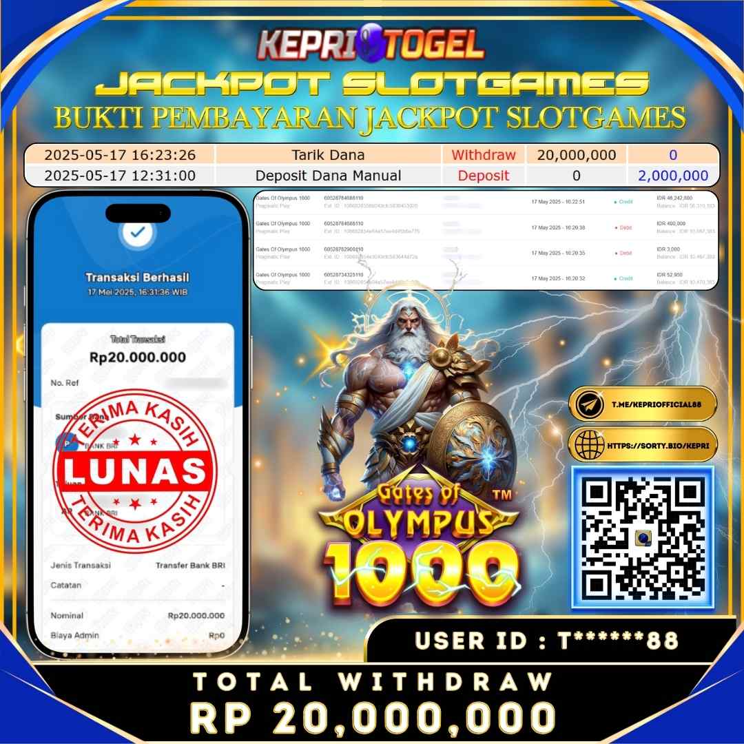 Kepritogel Jackpot Slot Gates Of Olympus 1000 Rp20,000,000