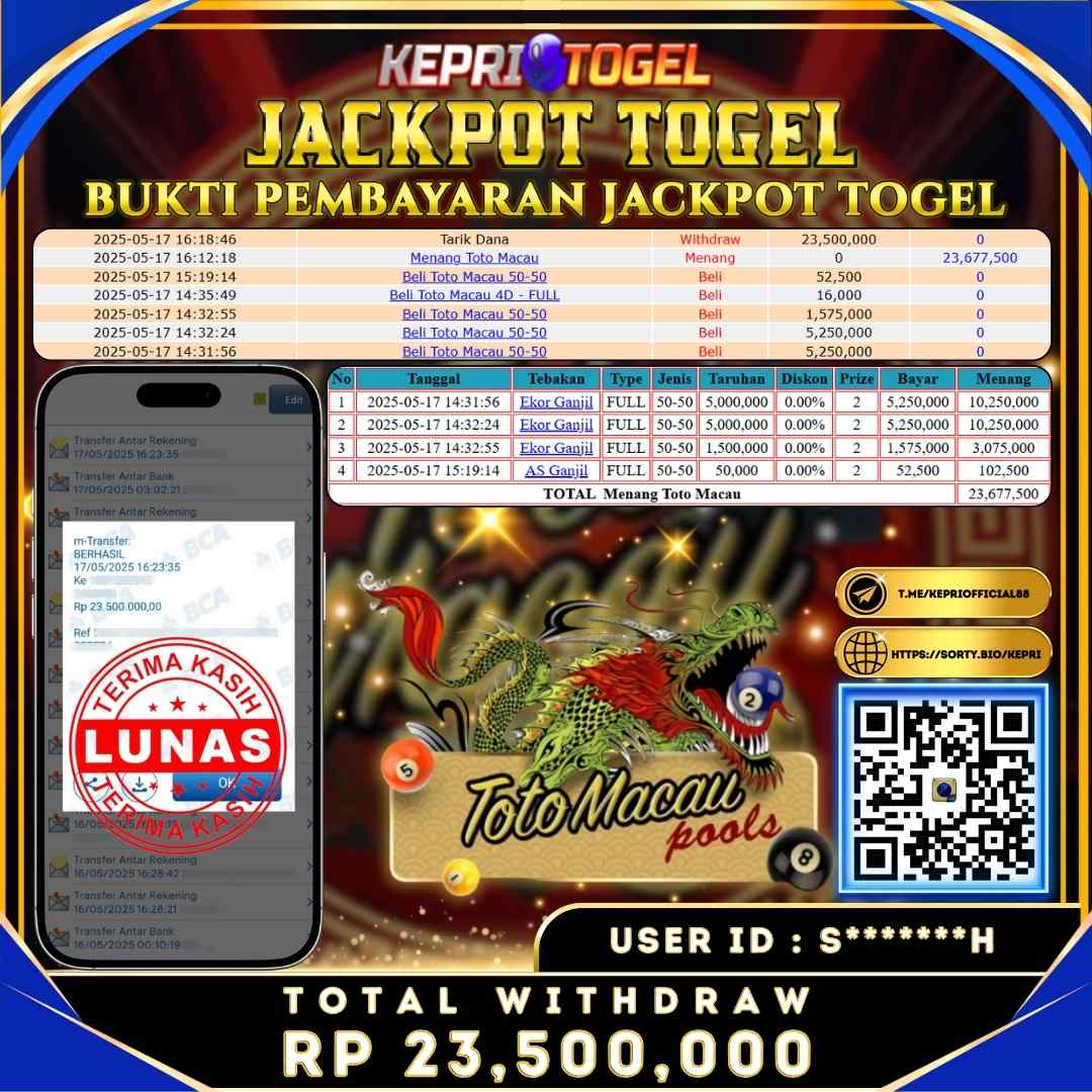 Kepritogel Jackpot Togel TOTO MACAU 4D Rp23,500,000