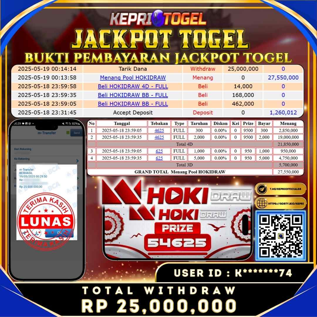 Kepritogel Jackpot Togel HOKIDRAW Rp25,000,000