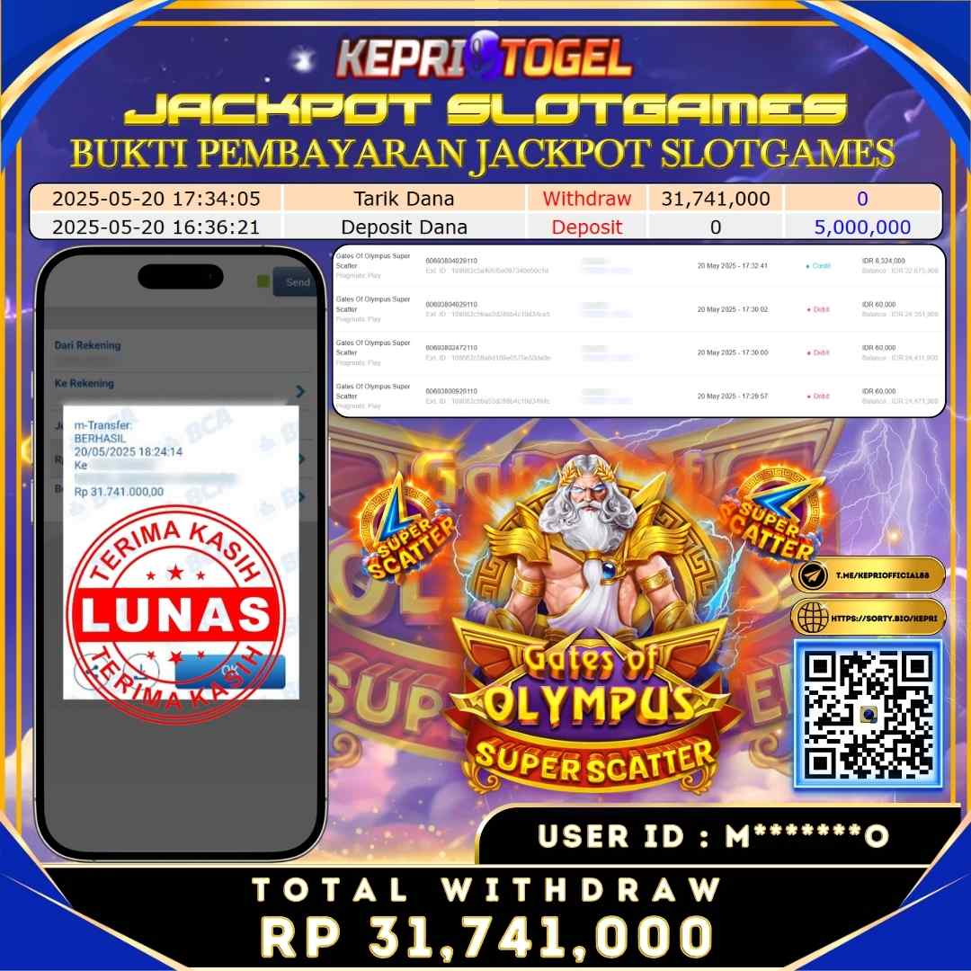 Kepritogel Jackpot Slot Gates Of Olympus Super Scatter Rp31,741,000