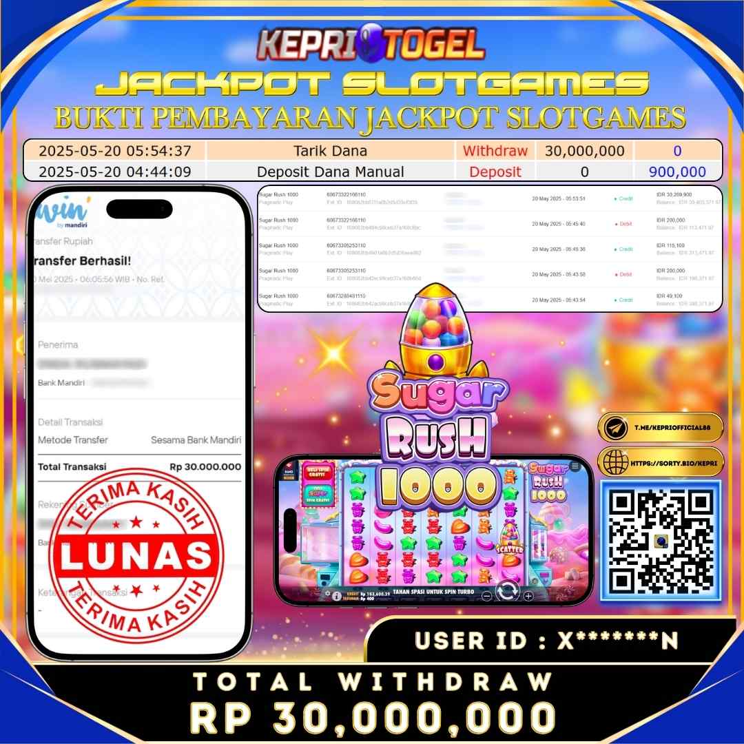 Kepritogel Jackpot Slot Sugar Rush 1000 Rp30,000,000