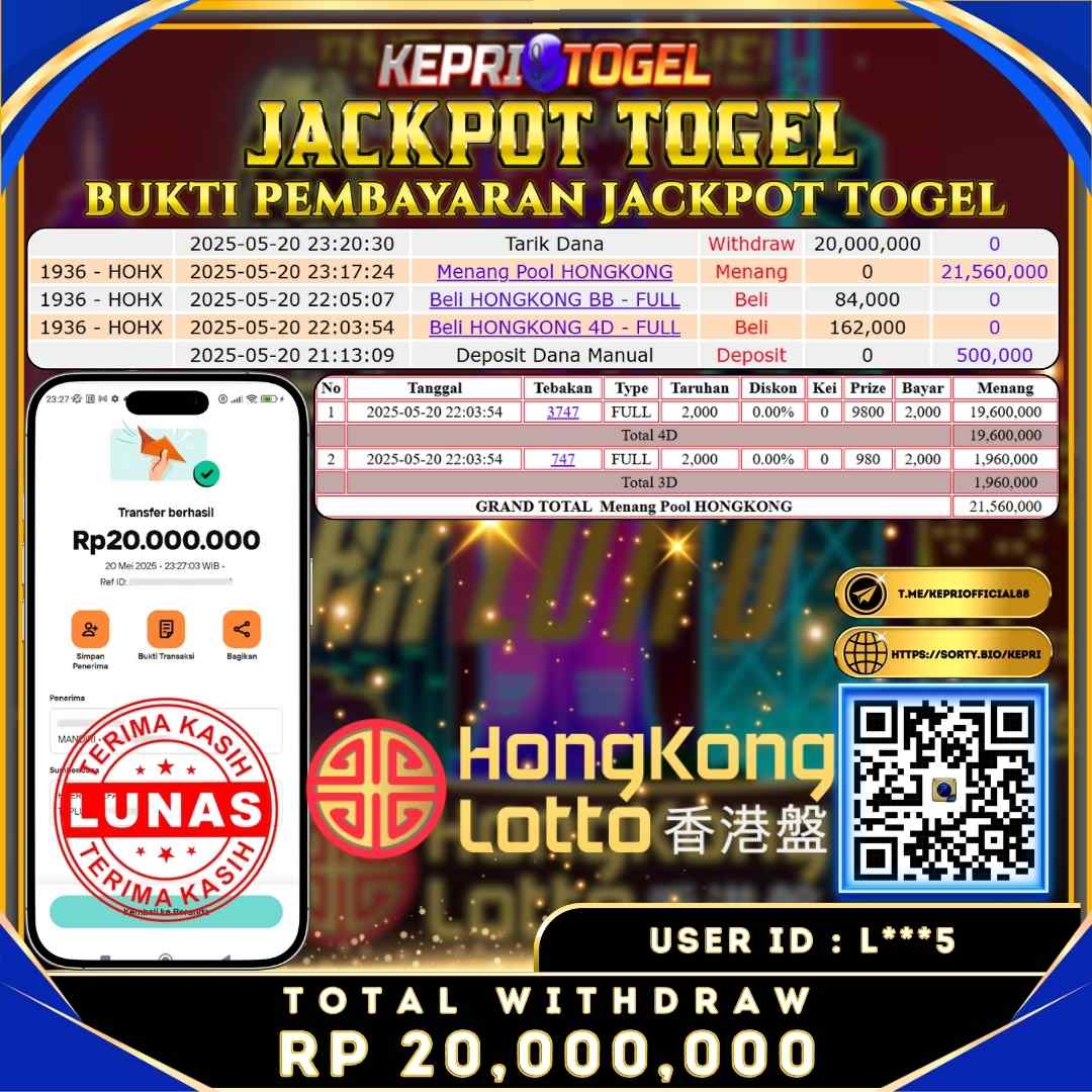 Kepritogel Jackpot Togel HONGKONG LOTTO Rp20,000,000