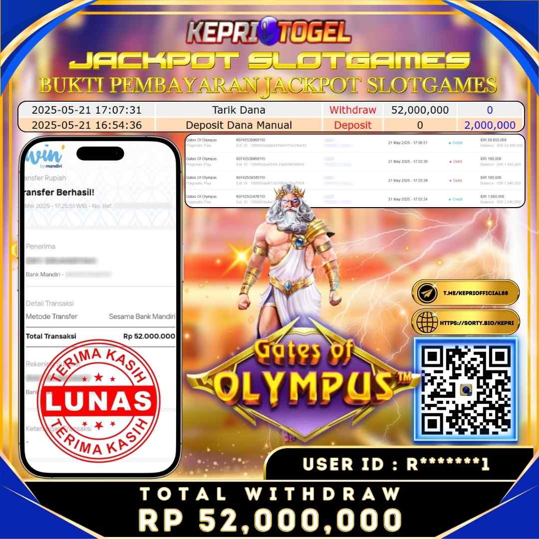 Kepritogel Jackpot Slot Gates Of Olympus Rp52,000,000