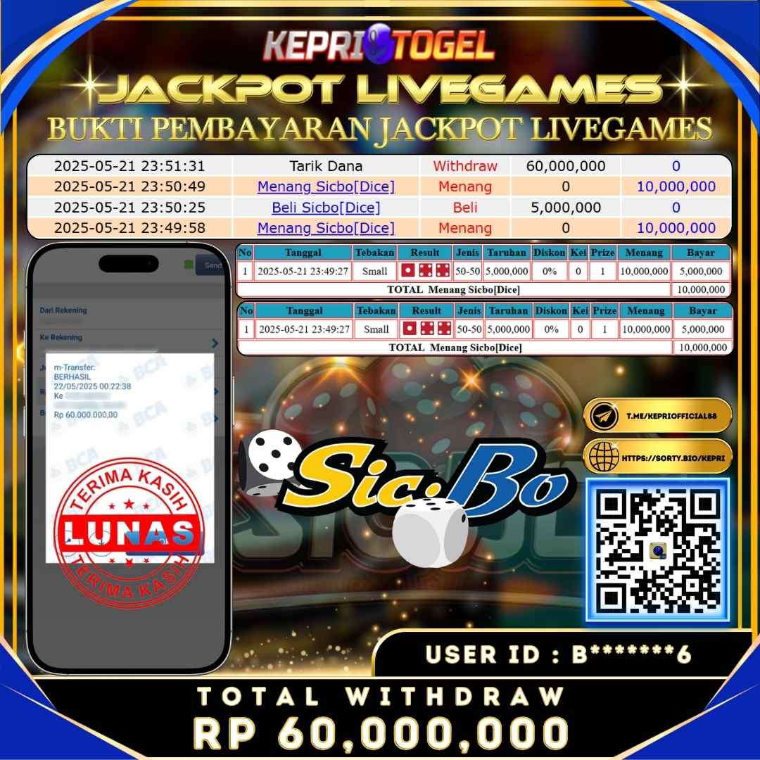 Kepritogel Jackpot Live Game SICBO ( DICE ) Rp60,000,000