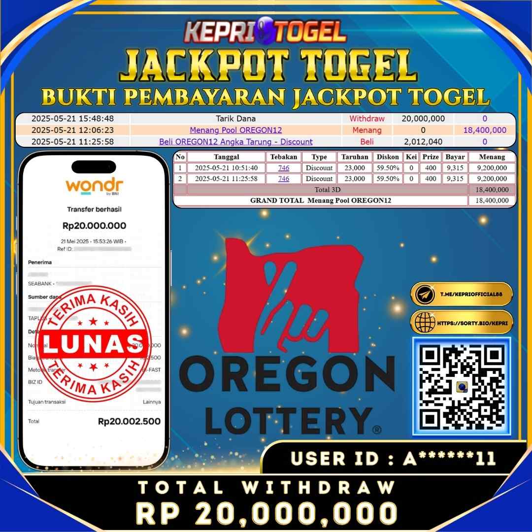 Kepritogel Jackpot Togel OREGON3 Rp20,000,000