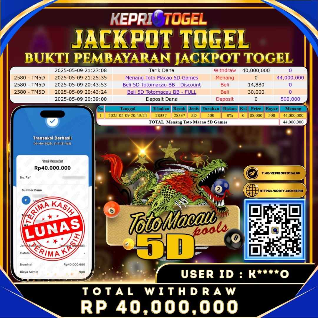 Kepritogel Jackpot Togel Toto Macao 5D Rp40,000,000