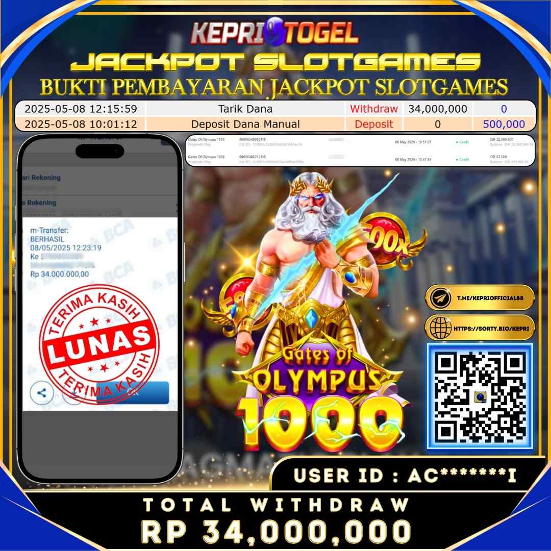 Kepritogel Jackpot Slot Gates Of Olympus 1000 Rp34,000,000