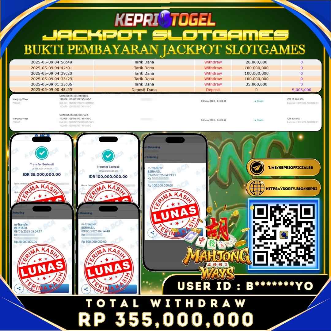 Kepritogel Jackpot Slot Mahjong Ways Rp355,000,000