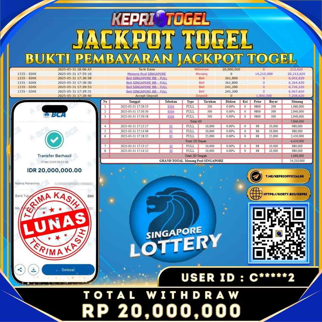 Kepritogel Jackpot Togel SINGAPORE POOLS Rp20,000,000