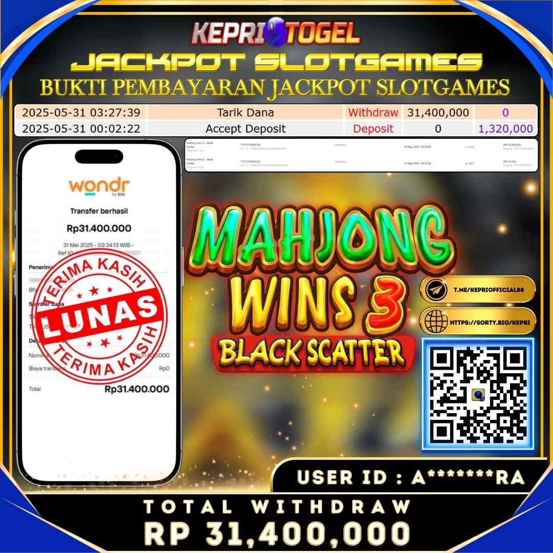 Selamat kepada UserId I****A telah berhasil mendapatkan kemenangan jackpot pada permainan Slot Mahjong Ways 2 Kepritogel sebesar Rp71,000,000,- . Kepritogel situs terpercaya sejak dulu hingga saat ini , Untuk kemenangan berapapun pasti akan kami bayarkan . Jangan ragu bermain di Kepri Togel . Kami pihak Kepritogel Menyampaikan terima kasih kepada seluruh member Kepri Togel yang telah Percaya dan setia Bersama kami bermain di Kepritogel hingga saat ini.