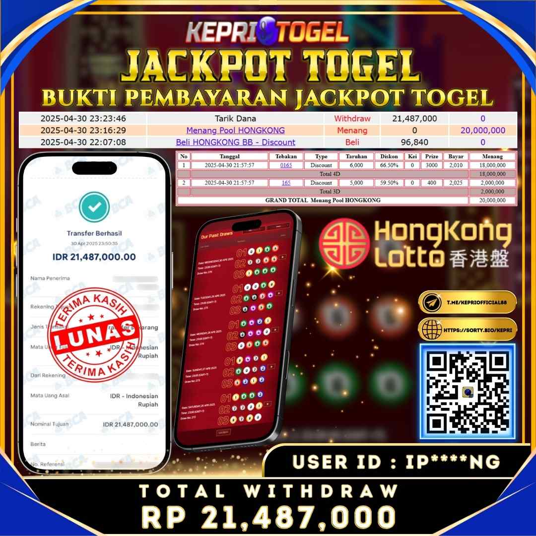 Kepritogel Jackpot Togel HONGKONG LOTTO Rp21,487,000