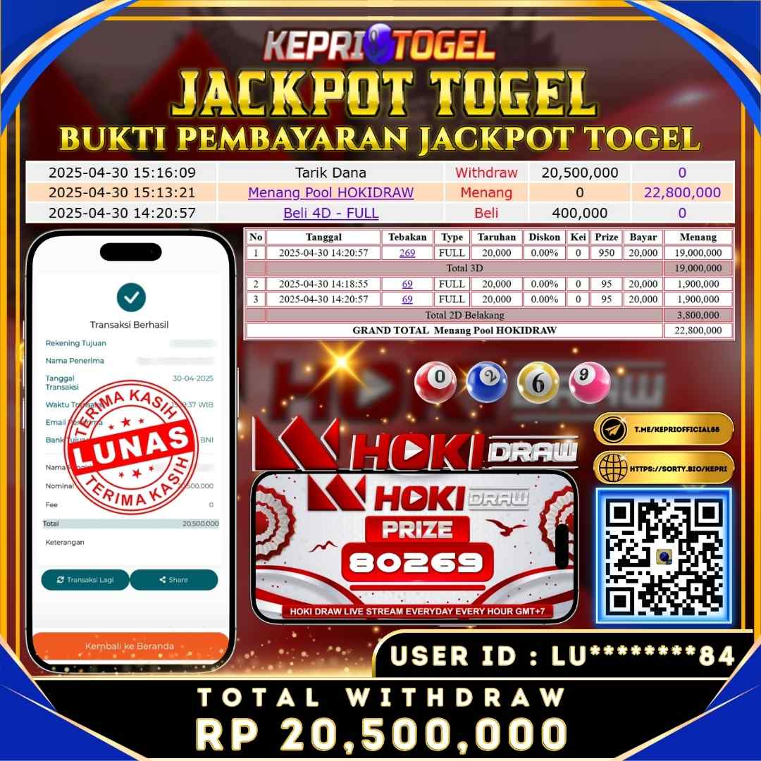 Kepritogel Jackpot Togel HOKIDRAW Rp20,500,000