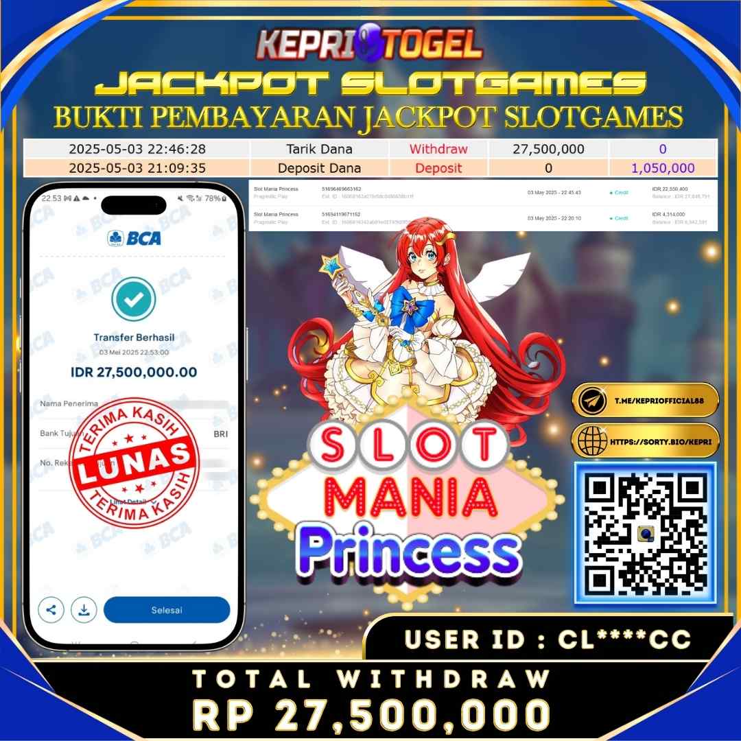 Kepritogel Jackpot slot game Slot Mania Princess Rp27,500,000
