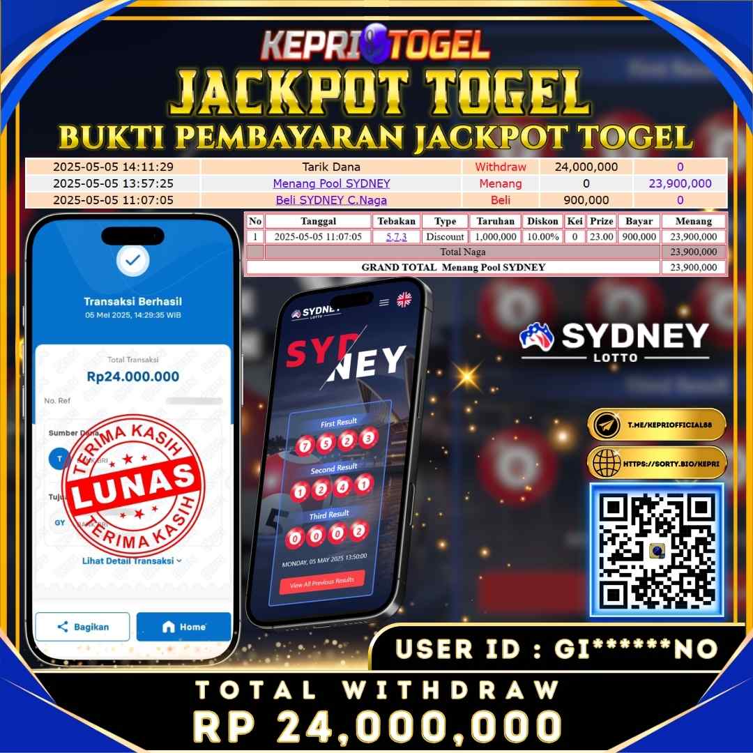 Kepritogel Jackpot Togel SYDNEY LOTTO Rp24,000,000