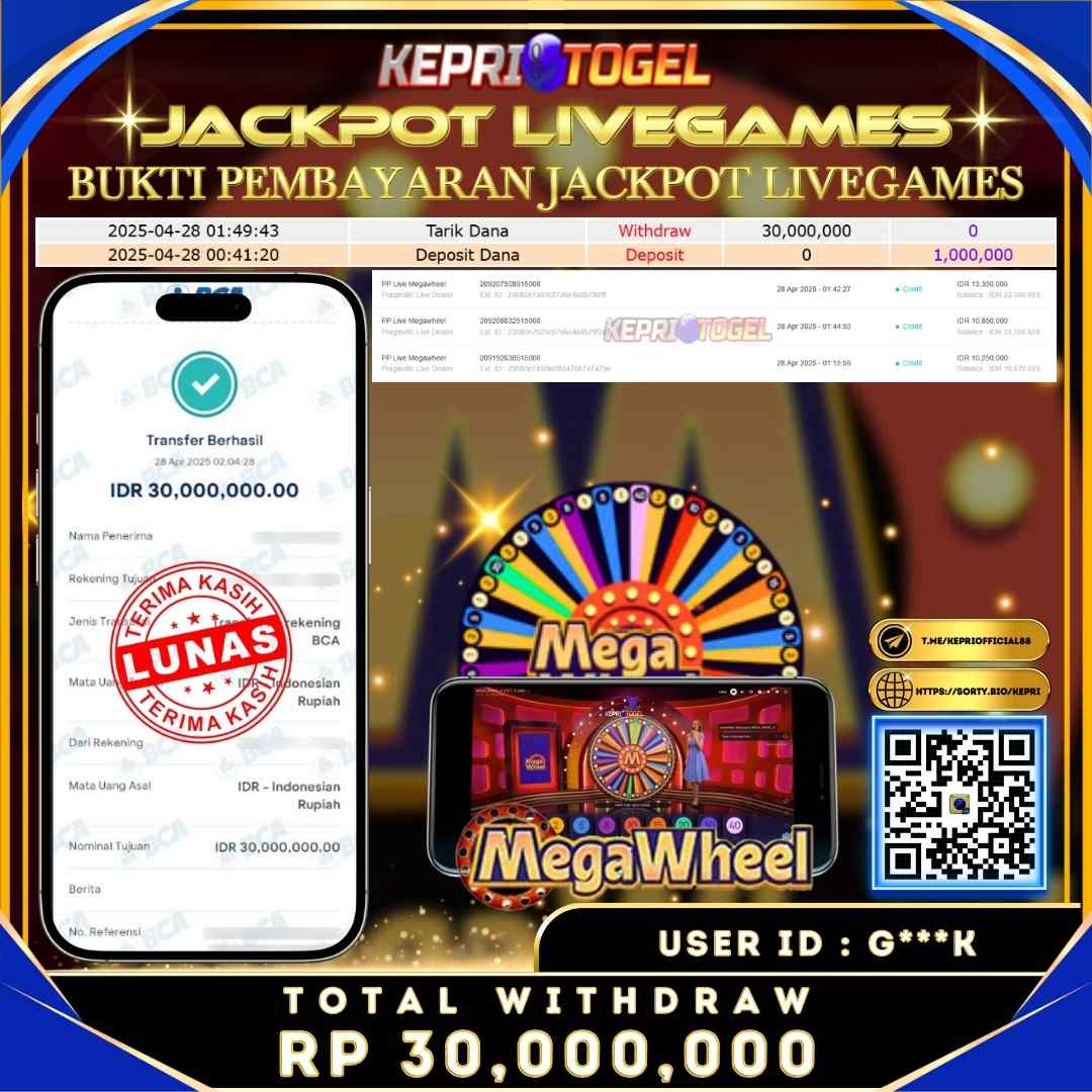 Kepritogel Jackpot Live Game Megawheel Rp 30,000,000