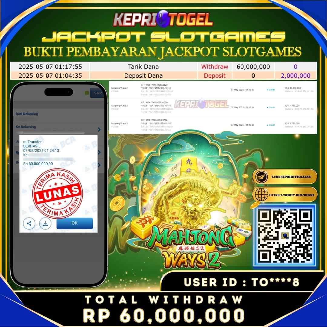 Kepritogel Jackpot Slot Mahjong Ways2 Rp60,000,000