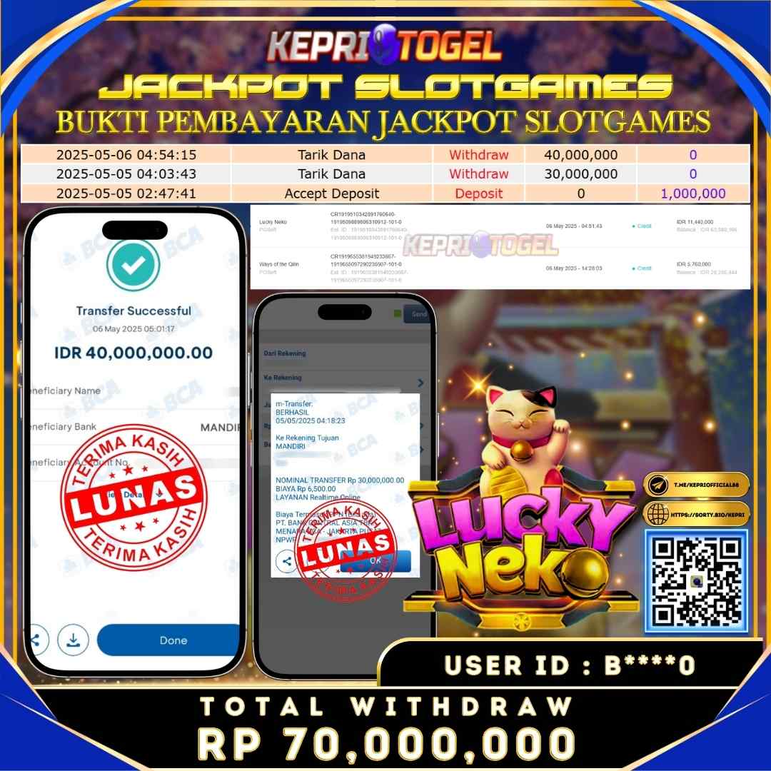 Kepritogel Jackpot Slot LUCKY NEKO Rp70,000,000