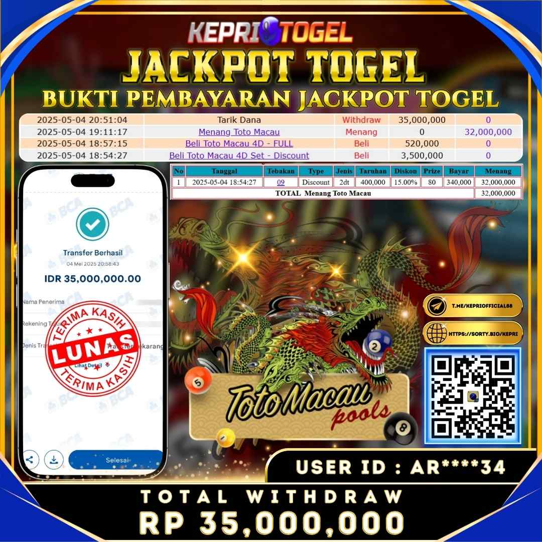 Kepritogel Jackpot Togel TOTO MACAU 4D Rp35,000,000