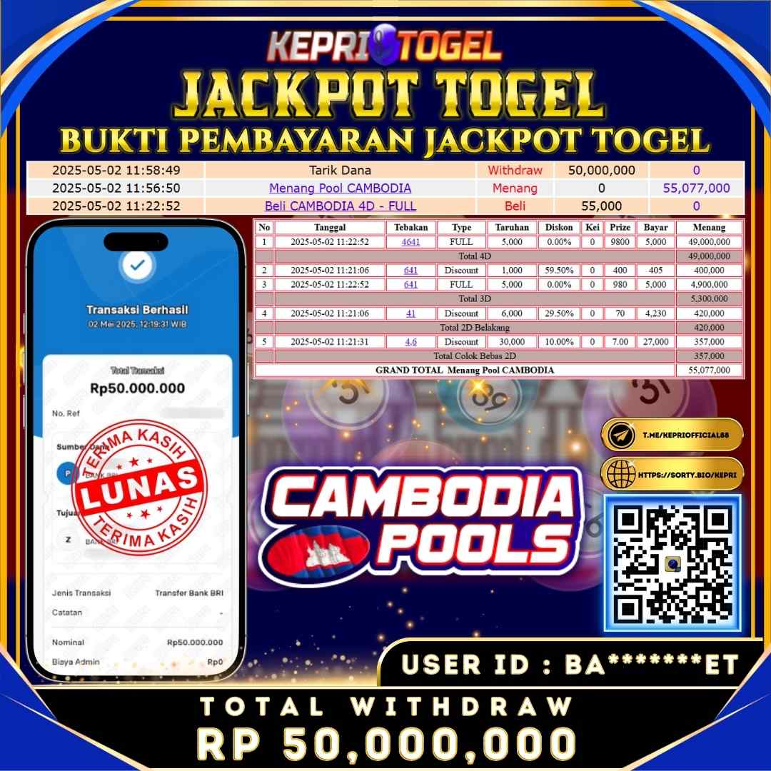 Kepritogel Jackpot Togel CAMBODIA Pools Rp50,000,000