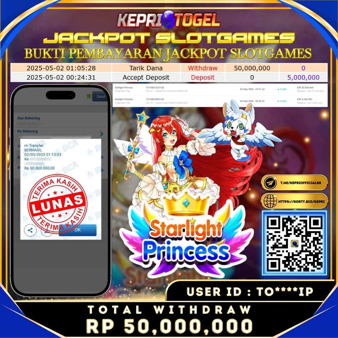 Kepritogel Jackpot Slot Starlight Princess Rp50,000,000